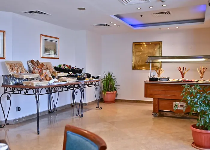 El desayuno está servido en el restaurante. Los huéspedes que busquen comida internacional son bienvenidos en el restaurante Sphinx, mientras que los que gusten de la cocina italiana pueden optar por el restaurante Nefertari. También hay un bar junto a la piscina.